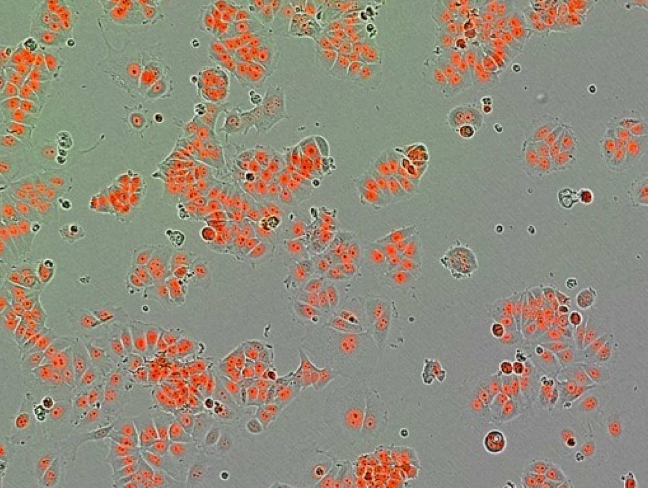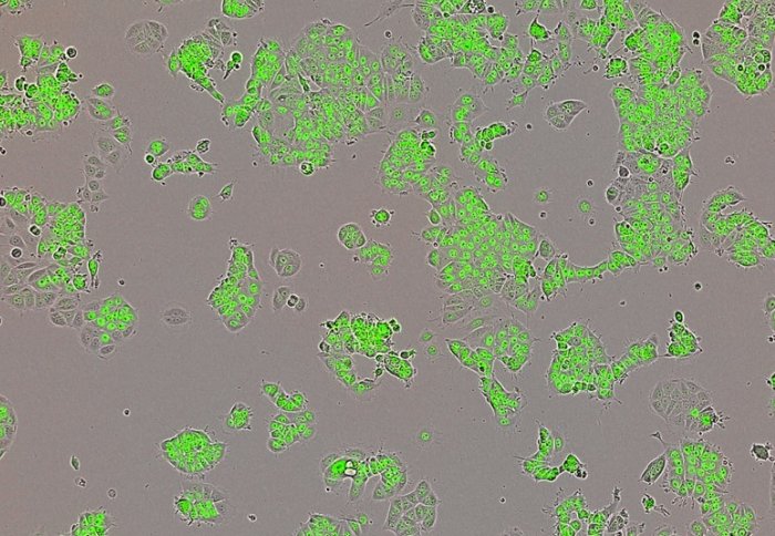 Human breast cancer cells (green)