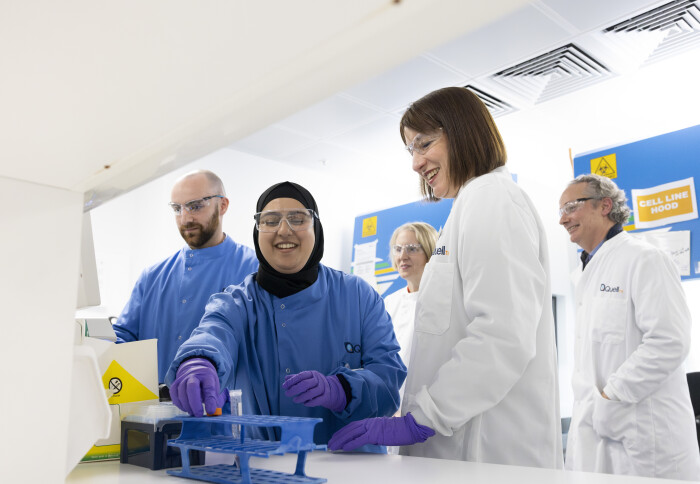 Chancellor of the Exchequer Rt Hon Rachel Reeves MP and Minister for Pensions Emma Reynolds MP visiting the Quell Therapeutics labs
