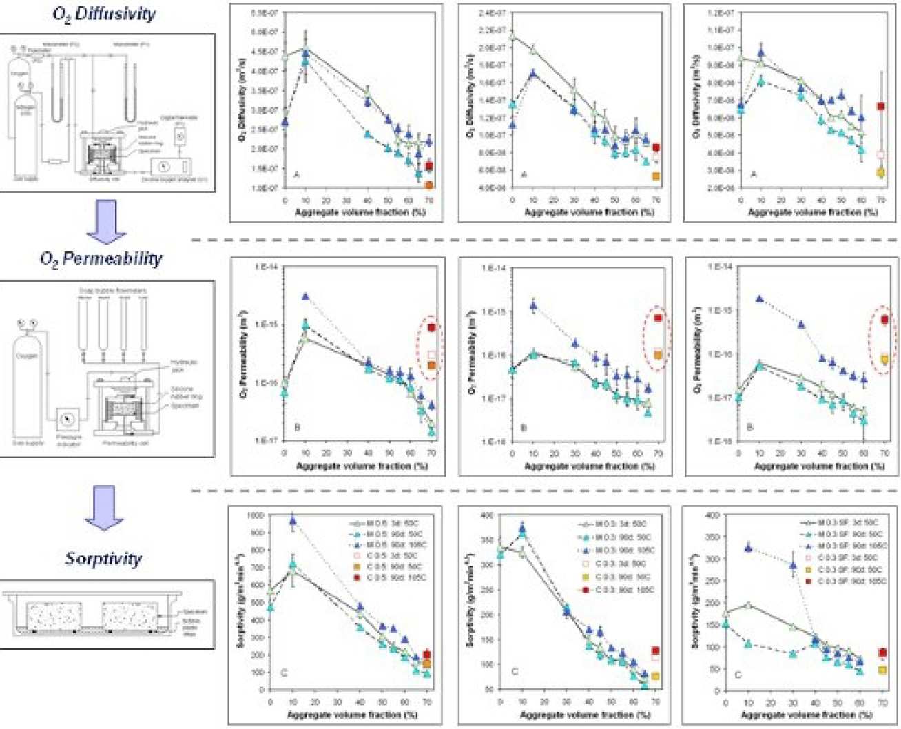 In this study1, we presented a critical review of the ITZ that highlights inconsistencies in previous studies, and carried out an extensive experimental study to determine the relative importance of ITZ and microcracking on three transport mechanisms. Over 200 samples of pastes, mortars and concretes were tested. Variables include w/c ratio, cement type, aggregate content, curing age and conditioning temperature.