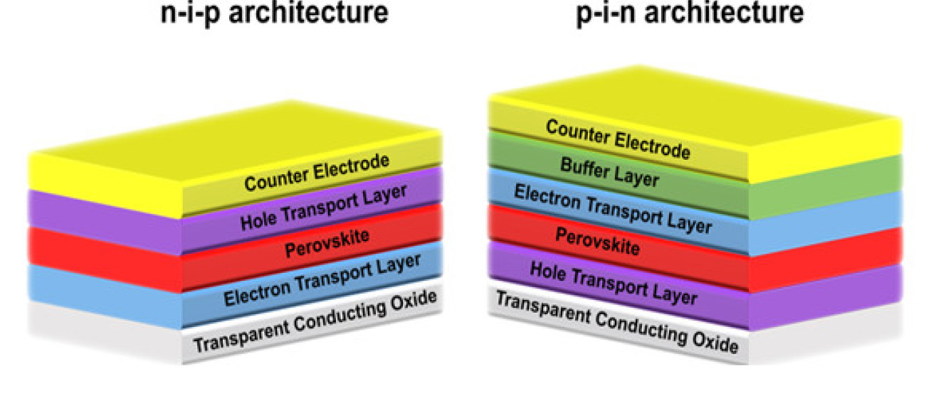 Both n-i-p and p-i-n perovskite solar cells are fabricated in the group as shown here