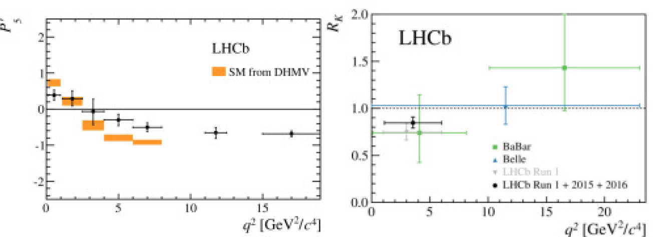 Imperial contributes significantly to LHCb's physics analysis and to the detector itself. We have pioneered many of the rare decays b → s(d)ℓ+ℓ−, which have produced the strongest signs of new physics seen at the LHC, including the angular analysis of B0 → K*0μ+μ− shown in the image above. We are also working on a number of semileptonic analyses and several indirect searches for New Physics. The group is heavily involved in construction and operation of LHCb's ring imaging Cherenkov (RICH) detectors, which play an essential role in identifying the decays, and in the design of the future tracking system.