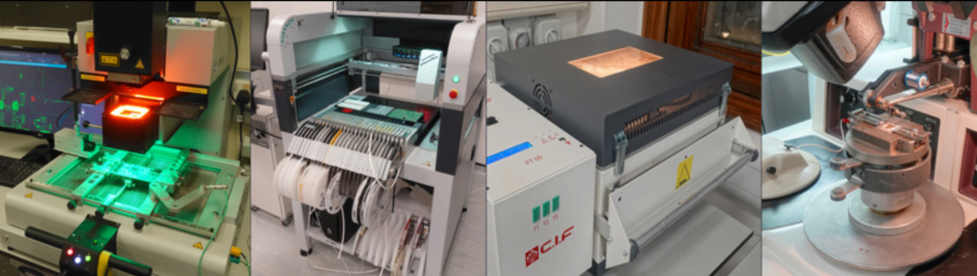 All modern high-energy physics experiments are highly reliant on high-performance analog and digital electronics. At the electronics workshop of the Imperial College HEP group we assist the academics with anything electronics-related required, from analog and digital design, PCB layout and firmware development. We have a well-equipped electronics production lab with equipment for automatic pick-and-place of SMD parts, BGA placement and rework, reflow-soldering, as well as manual and automatic wire-bonders and equipment for bond strength testing, environmental testing and testing of integrated circuits on wafer. We assemble both prototypes required for R&D, test modules required for testing circuits in different types of particle beams, including bump and wire-bonding of ASICs, and also perform small-scale production of when quick turnaround or e.g. low radioactive background contamination is required.