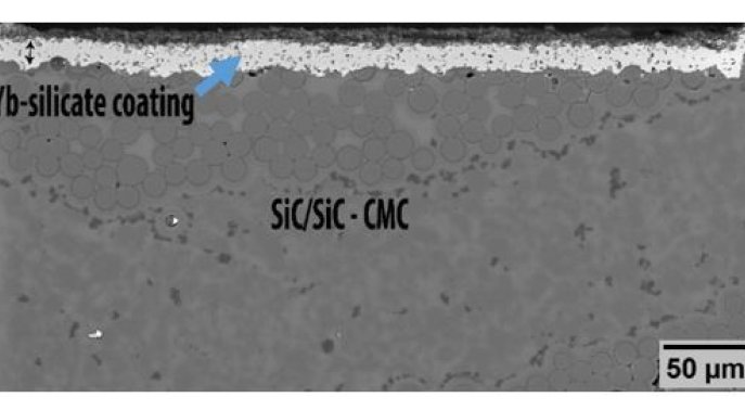 Silicon carbide fibre reinforced ceramic matrix composites (SiC/SiC CMC) are state of the art materials to substitute alloys in aerospace industry, with advantages of weight saving up to 30% due to their low density, improved fuel consumption and reduction of NOx emmision and increased service lifetime. CMC materials undergo accelerated oxidation in the high temperature environments found in a gas turbine. To prevent such accelerated oxidation and premature component failure, environmental barrier coatings (EBCs) are required to limit the access of oxygen to CMC surfaces. A variety of EBCs have been developed in the past consisting of a minimum of 4 layers requiring a costly application method such as plasma spraying. The aim of the project is to understand the adhesion strength at the interface of a single layer of coating at the interface of a substrate to predict accurately the service life of the coating and ensure they survive their design conditions.