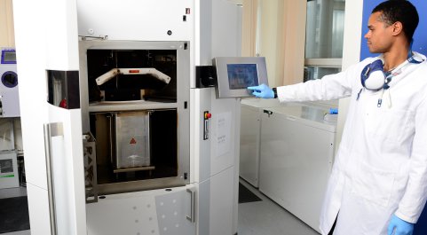 The MSK Lab has an EOS P110 Formiga SLS (selective laser sintering) 3D Printer. This process sinters powdered nylon-12 (PA 2200) to produce 3D objects.