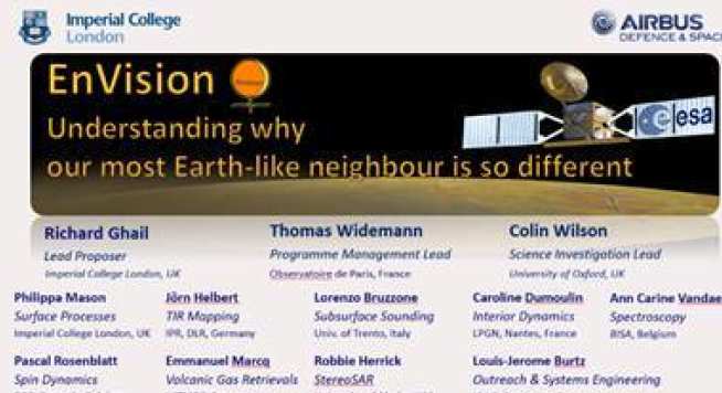 EnVision is a mission led by Imperial College and is led by Richard Ghail. The core science team includes Philippa Mason; EnVision has been selected by the European Space Agency to proceed into Phase0/PhaseA definition study (http://sci.esa.int/cosmic-vision/60257-esa-selects-three-new-mission-concepts-for-study/).