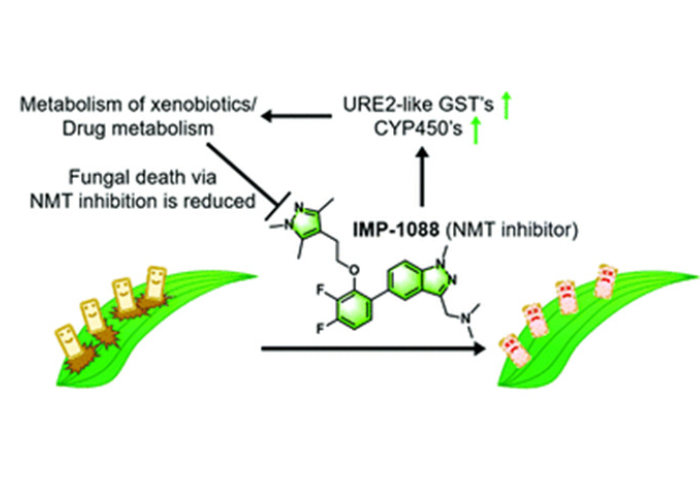 The newly published research targeted Z. tritici via inhibition of the N-myristoyltransferase (NMT) enzyme. NMT inhibition is known to be effective in several pathogenic organisms and is an ongoing focus of interest for the Tate group. NMT enzymes function by transferring fatty acid chains onto protein targets in the cell. Z. tritici NMT was characterized biochemically for the first time and the Z. tritici myristoylated proteome was profiled. Against this background of knowledge, the first inhibitors against Z. tritici NMT were identified and validated.