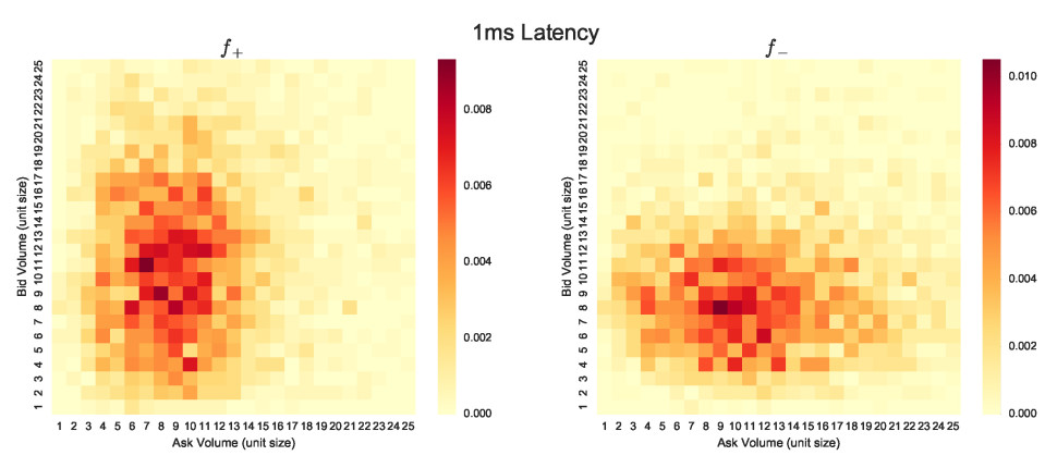 Volume distribution immediately one millisecond after a price change for YAHOO