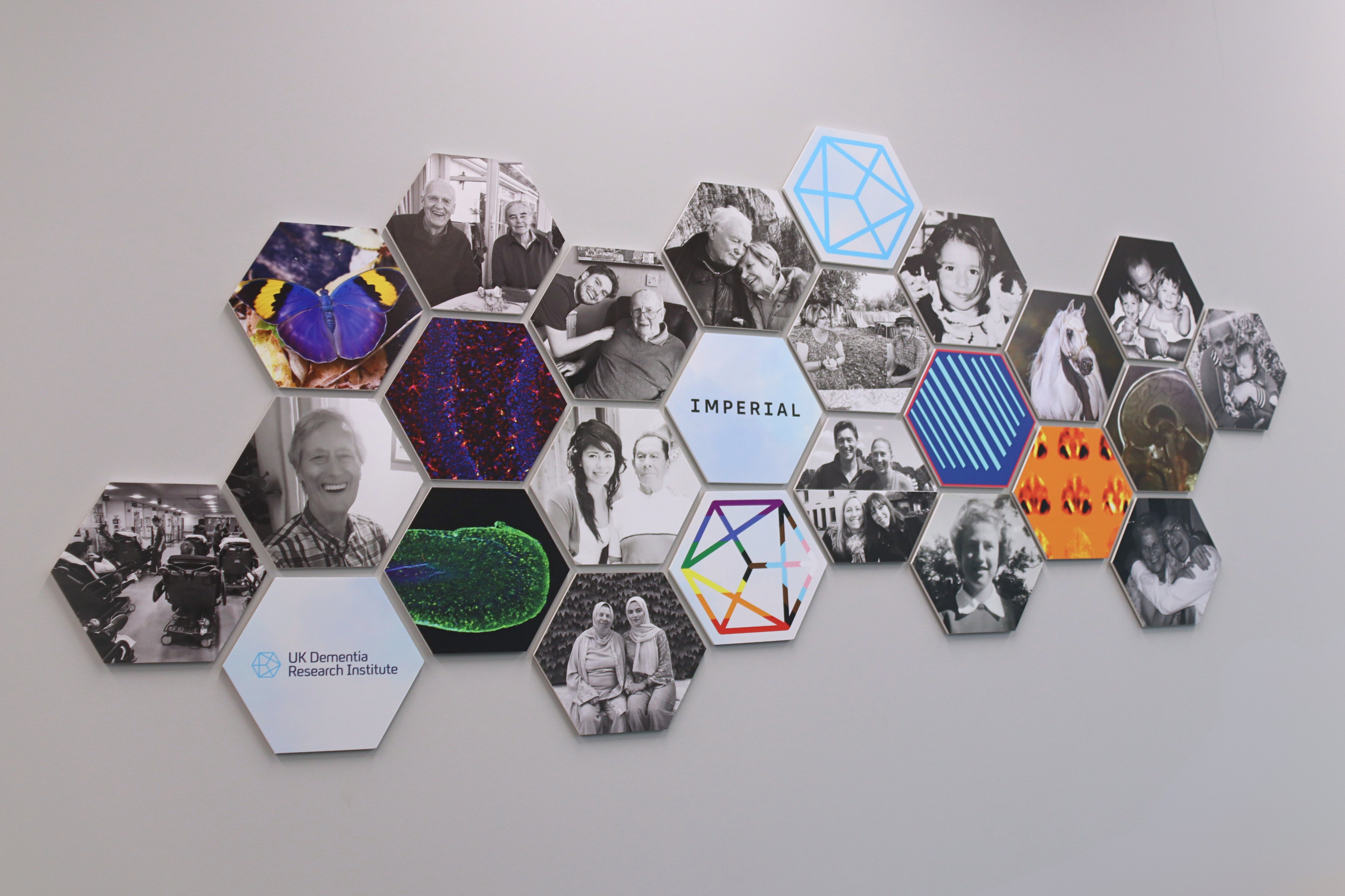 On Level 7 of the White City Sir Michael Uren Hub, we have a photo wall to show who we are and what motivates our science. Each photo is in a hexagonal frame to match the UK DRI logo, and they are placed in a honeycomb pattern. The images are shown below, accompanied by a paragraph explaining what they all mean to members of our team.