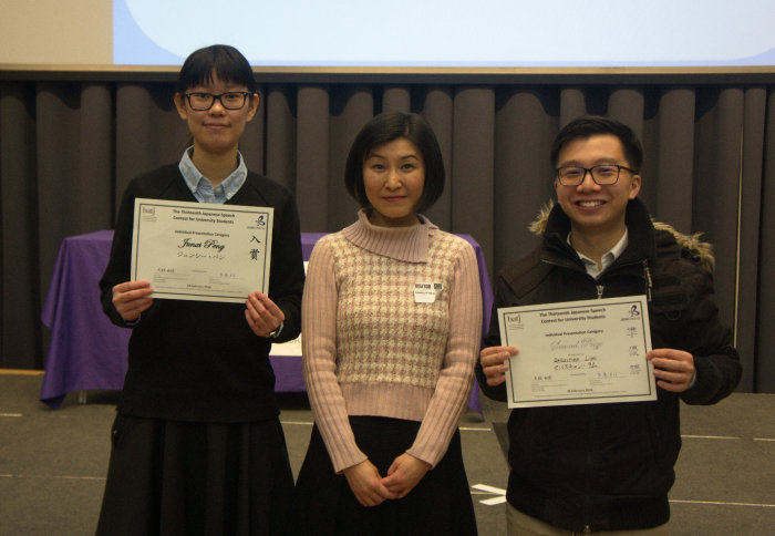 Dr Tokumaru said: “Sebastian and Junxi both made extraordinary efforts to be selected as finalists of the Japanese Speech Contest, while they study their own main degree subjects full time.