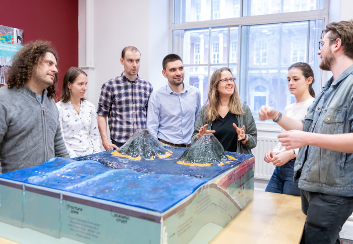 Dr Saskia Goes discussing subduction with her research group
