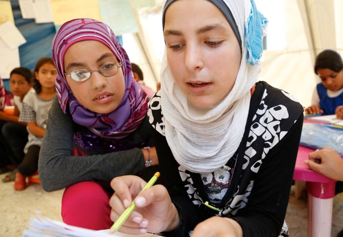 Young refugees at a temporary school in northern Lebanon