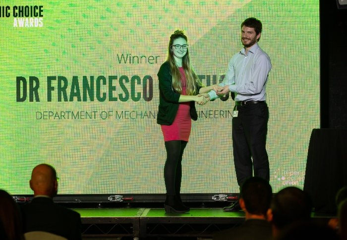 Dr Francesco Restuccia received the award for Student Wellbeing Champion at the 2019 Student Academic Choice Awards (SACA).