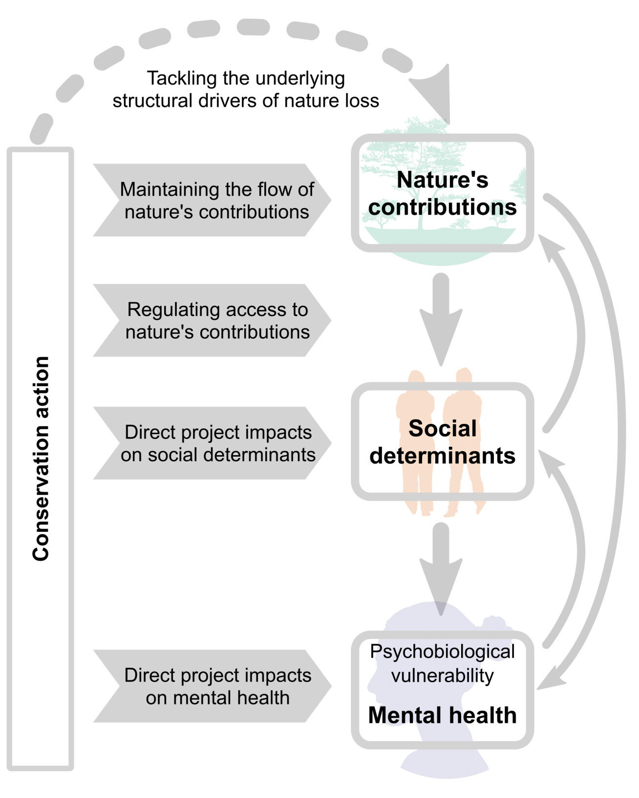That expansion could take the form of relatively strict protected areas that exclude people. Our framework suggests that such an approach might undermine progress towards global mental health goals.