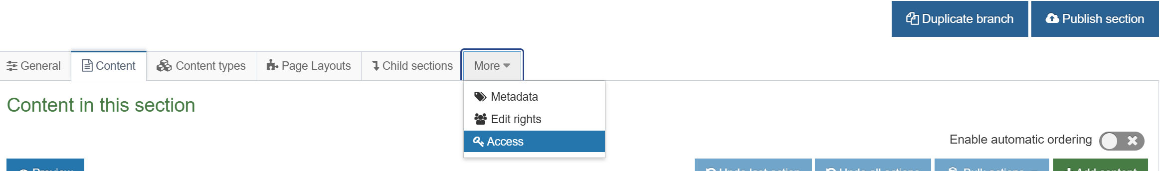 7. Publish the section (or it will publish automatically overnight). Once the page is published the restriction will be in place. See guidance for Publishing your pages (making them live).