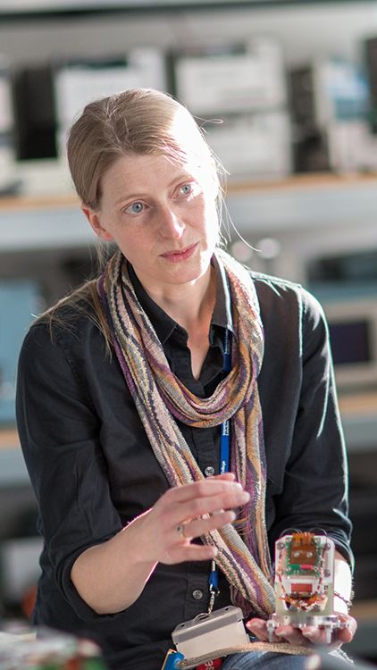 Helen O'Brien holding a hand-sized piece of equipment