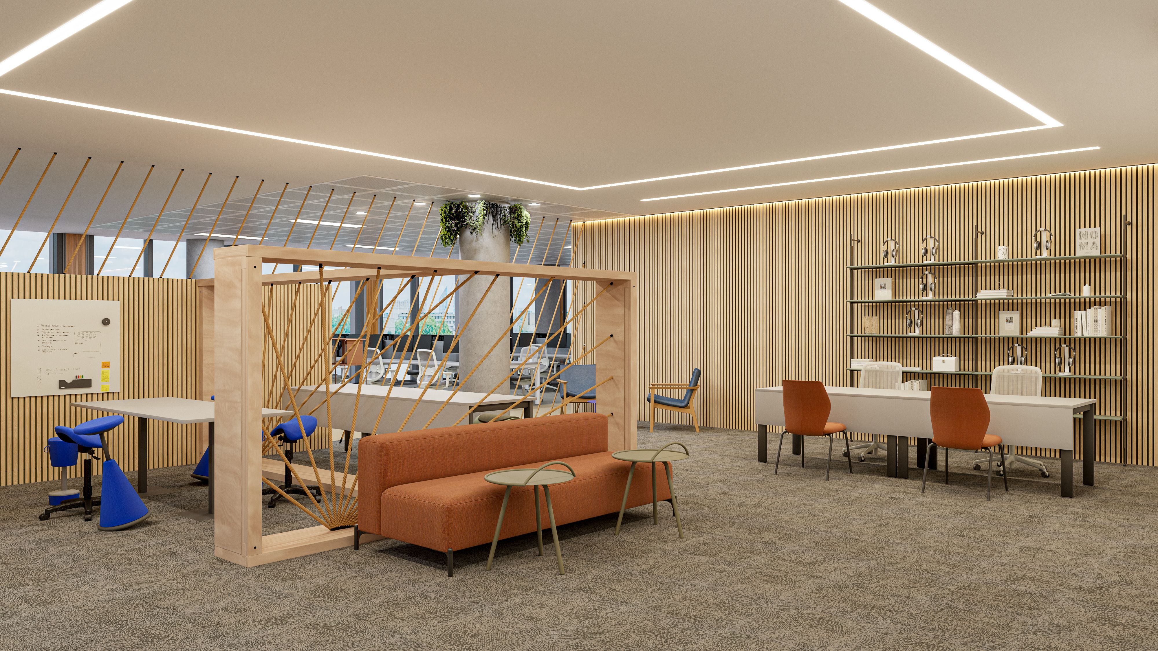 Welcome to your new White City Hub. This space has been designed to support different ways of working, whether you need a quiet place to focus, a workspace for collaboration, or a comfortable spot to take a break.