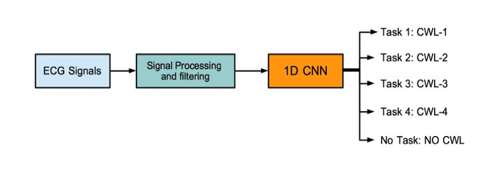 In this section, a machine learning approach for the prediction and classification of CWL is suggested. As described in Figure 3.3(a), the first ML approach consists of two steps. In the initial step, a binary classification mechanism based on the concept of transfer learning is implemented for the recognition of the presence of CWL or not during a surgical procedure. If any CWL is detected in the initial step, this information is fed onto a second ML approach based on the model of 1D-Convolutional Neural Network for the classification of the different tasks performed in each surgical task as described above [9], i.e., a) CS, b) MA, c) ND or d) DD. The Machine Learning (ML) strategy suggested in MAESTRO for the data fusion among EEG, fNIRS and Pupil Eye data is illustrated in Figure 3.5.