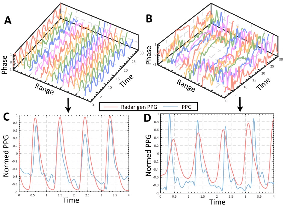 Our methods extract clinically meaningful features such as respiration dynamics, gait timing parameters, movement variability, and sleep-related patterns directly from radar signals.
