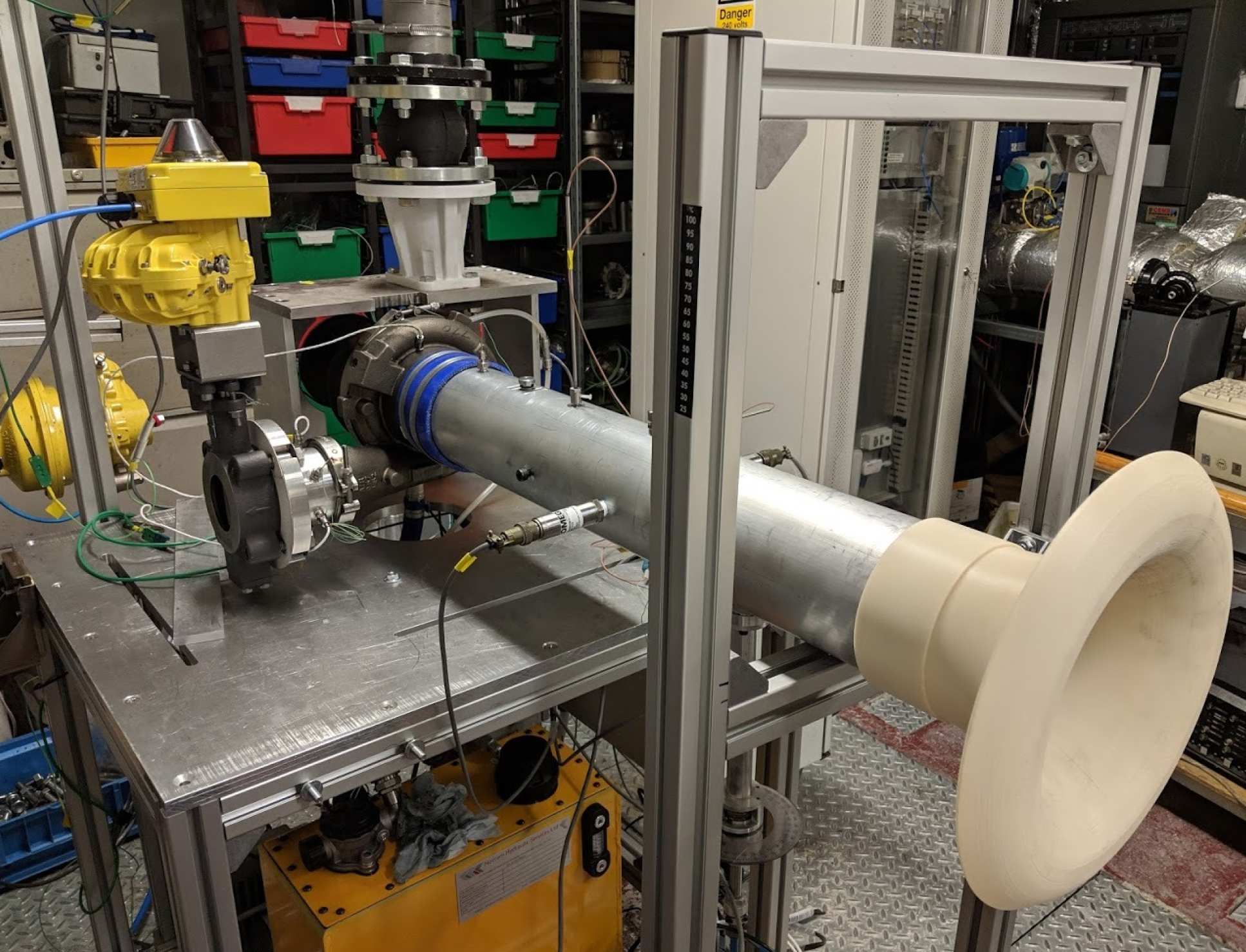 The Surge Rig allows precise map measurment of turbocharger compressor performance into low and reverse flow regions. A plenum may attached to the compressor exit provide a large B system for deep surge measurements.