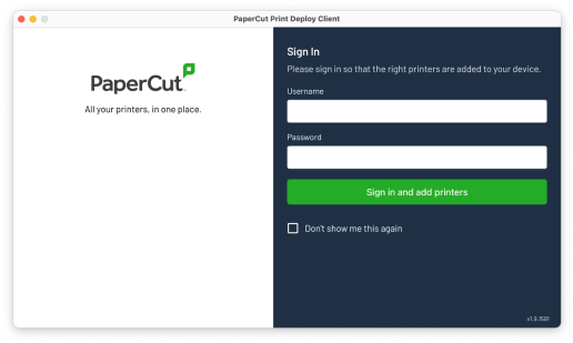4. After restarting, the PaperCut Print Deploy Client should automatically open. Click Sign in on any of the available drivers listed.