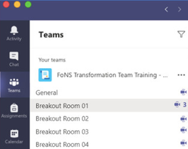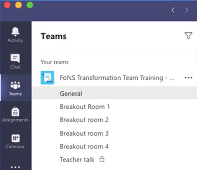 When it is time for the students to go off into their groups, give clear instructions that they should not click on Leave at the top right of the meeting in the General channel. Rather they can just navigate to their Breakout Room channel and join a new meeting there. When they join the new meeting, the meeting in the General channel will be placed on hold; they can resume participation in this meeting later. If they have problems joining the new meeting, they should leave the meeting in the General channel and re-join this later, after they leave the meeting in the Breakout Room channel.