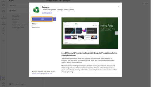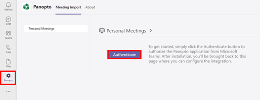 1. To map your Personal meetings, open the Panopto app in Microsoft Teams.