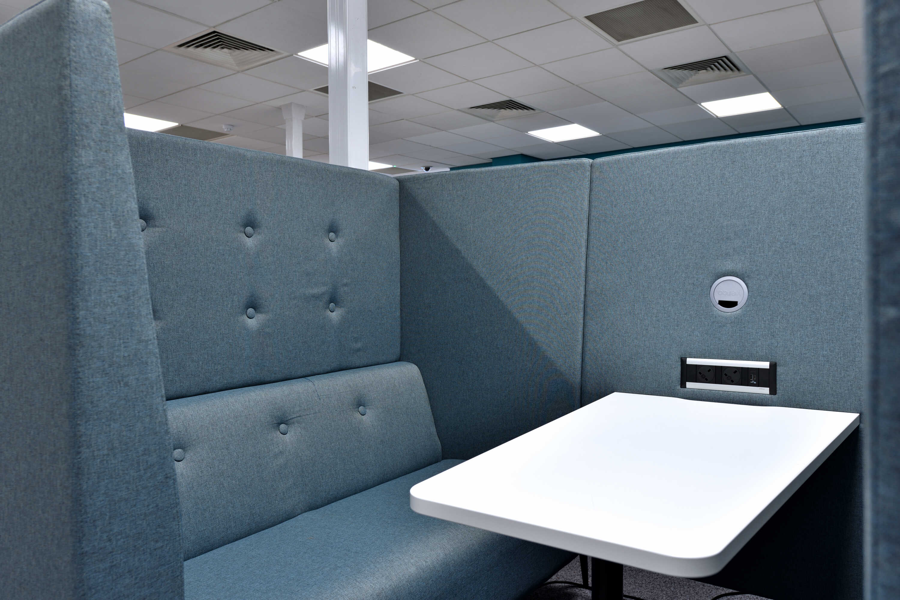 Six booths are located in the collaborative study zone. Each seats up to four people with power sockets and USB charging ports available within each booth. Bookings are limited to one session of up to four hours per day and can be booked via Library bookings.
