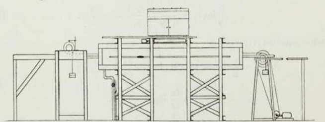 As with the 5 x 4 tunnel, no detailed information on the tunnel’s performance appears to remain. A paper by G.J. Richards published in 1934 in Philosophical Transactions of the Royal Society shows that, in addition to wind tunnels, low speed experiments were being carried out in a water facility using an early form of particle image velocimetry. The drawing shows the ‘Imperial College Fluid Motion Apparatus’, as it was called. The water tank was 3.66 m long, 0.46 m high and 0.3 m wide.
