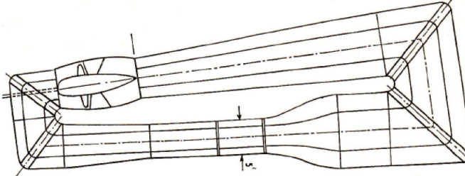 It was used primarily to compare measurements of flow fields around bodies at low Reynolds numbers with predictions from solutions of the equations of motion. Bodies were drawn along the tank at constant speed and flow velocities found by seeding the water with particles and recording their paths on a photographic plate exposed for a suitably short duration. Before returning to the subject of low speed wind tunnels it should be noted that the Department has used water facilities for fluid mechanics’ research up to the present day.