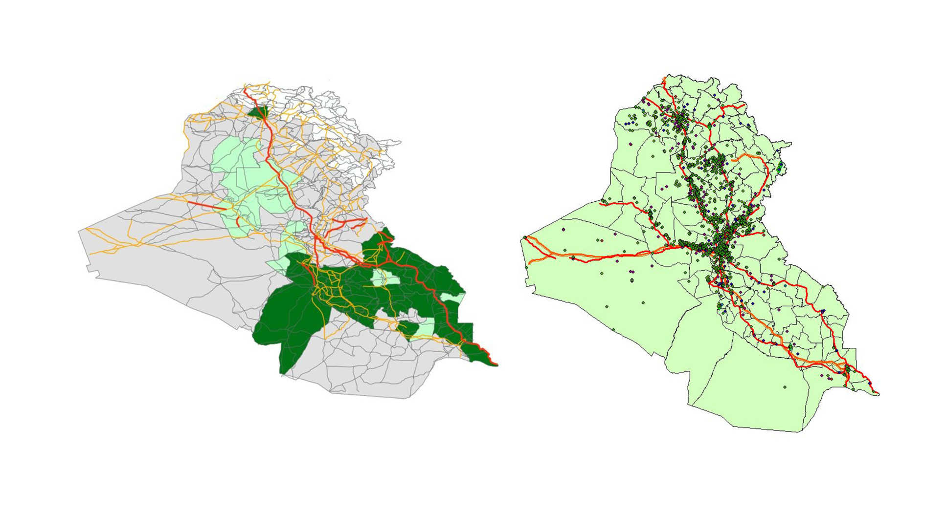 Data is hard to come by in Afghanistan, but in neighbouring Iraq, violence is well documented by the US military and NGOs – and so that was where Gomez decided to focus. In the years following the 2003 US invasion of Iraq, the United States pumped around $11.9bn into the Iraqi road network, which expanded by 21 per cent. But violence soared and, at its peak, more than 1,500 civilians were killed every month.