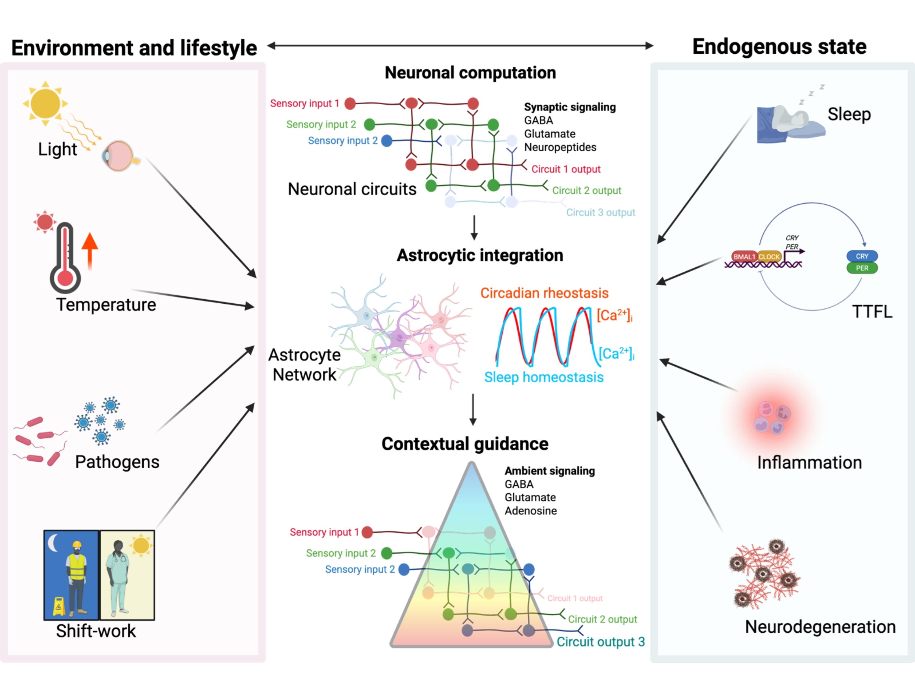 Astrocytes are increasingly recognised as key regulators of brain physiology. Our work has shown that astrocytes within the SCN contain their own circadian clocks and play an active role in controlling neuronal rhythms (Brancaccio et al. Neuron 2017; Brancaccio et al., Science 2019; Ness et al., EMBO J, 2025).