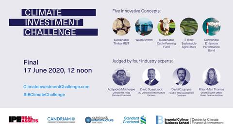 The final, hosted virtually by Imperial on Wednesday 17 June, featured five teams comprising MBA and Masters students from Imperial Business School, the University of Cambridge and the University of Edinburgh. In its inaugural edition of the competition, the Climate Investment Challenge attracted 38 climate investment proposals from 14 different universities across the UK, representing nearly 120 Masters-level students, with the finalists presenting to industry judges and a global audience of 150 academics and industry professionals.