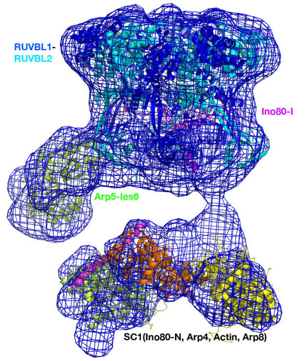 The collaborative work between the Wigley and Zhang groups uses cryoEM to produce the first high resolution structure of a multi-subunit chromatin remodeller revealing the subunit arrangement of the INO80 chromatin remodeller as well as the structure and functional roles of key subunits within the complex.