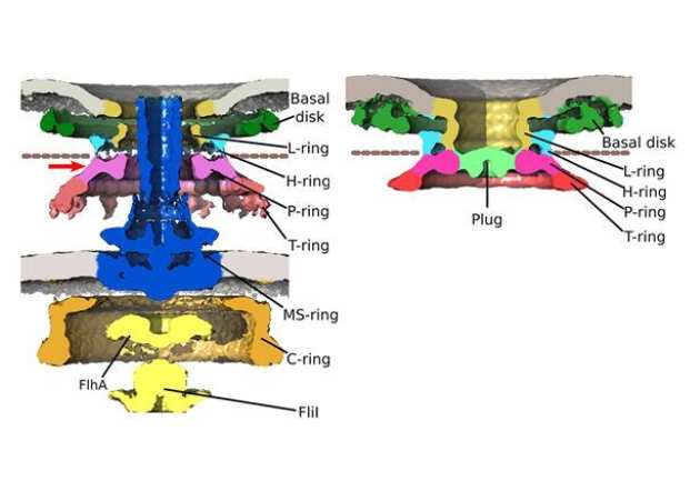 γ-proteobacteria eject their polar flagella under nutrient depletion, retaining flagellar motor relic structures.