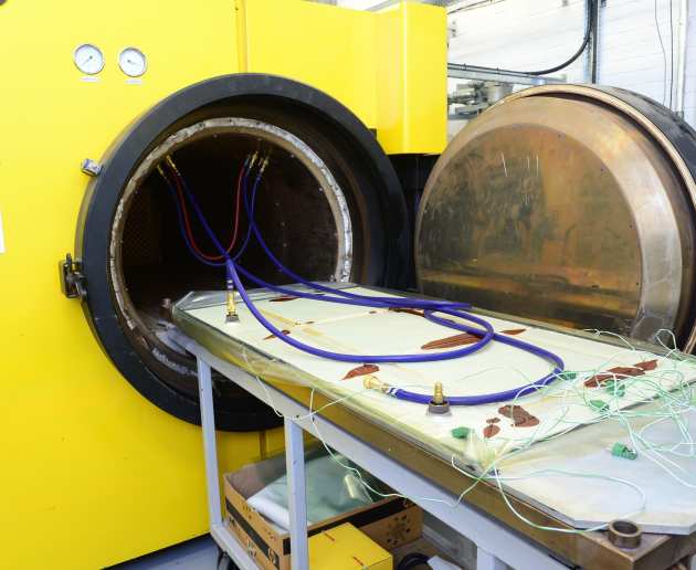 Our autoclave is able to process almost any thermoset and thermoplastic material. A maximum temperature of 450°C allows even most challenging thermoplastics such as PPS, PEEK and PEI to be processed. This equipment can be used to produce test specimens under precisely controlled conditions or complex parts such as aerospace grade stiffeners and stringers.