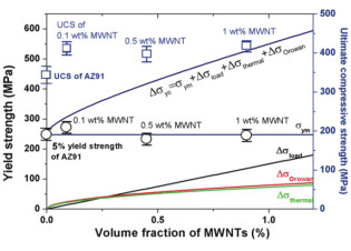 Nanocarbon reinforced lightweight metal composites such as Mg, Al and their alloys are produced in this project via melting process. The dispersion of nanocarbon is studied to achieve a homogeneous dispersion through physical and chemical approaches. The composites have obtained improved mechanical properties and the microstructure of these composites has also been investigated. Analysis has been undertaken to predict the potential of the CNTs additions.