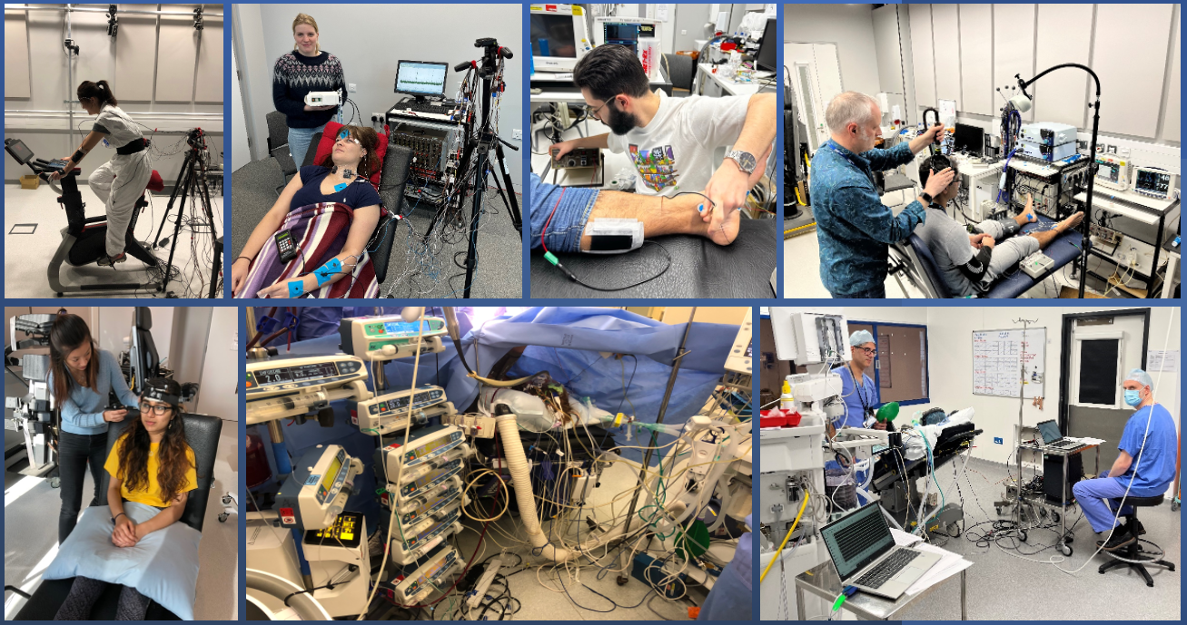 Our research aims to gain new insights by creating models of clinical scenarios in the laboratory and by setting up “field” laboratories in clinical settings. We use our expertise in applied physiology and neurophysiology research methods to tackle a diverse range of research questions that are linked by their relevance to anaesthesia, perioperative medicine, and those who deliver it.