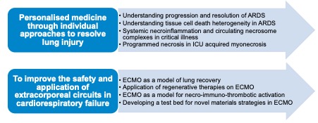 We take a clinical translational approach to elucidate novel physiological and biological mechanisms of organ failure during critical illness, with the ultimate aim of improving the management and outcomes of patients admitted to critical care. We take clinically relevant observations and ask how they could be investigated further using experimental medicine approaches leading to novel understanding and future treatments.