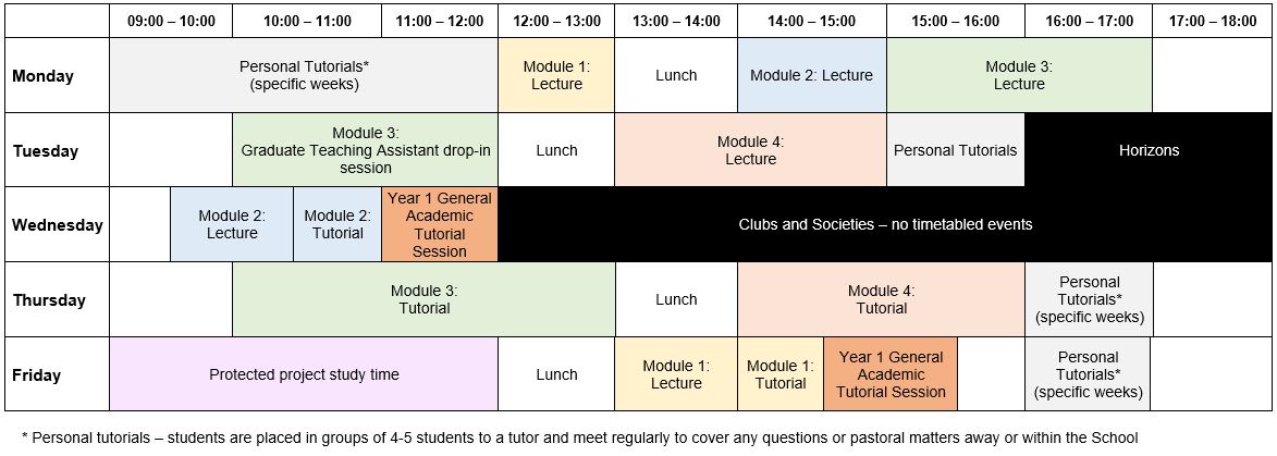 - The above example is provided for illustration only - your timetable may look very different when you join.