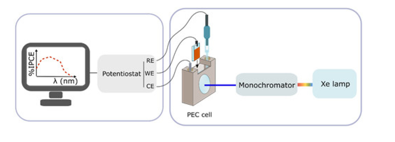 Incident photon-to-current conversion efficiency measurements are conducted in a setup illustrated in below.