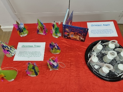 Blossom room explored textiles with the children using different materials such as feathers and Autum leaves as well as creating beautiful Christmas decorations.