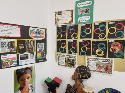 Poppy room diplayed a range of art work for example marble painting, they also created traffic lights to honor Garret Morgan (the inventor of the traffic lights) during Black history month as well as making coloured stain glass leaves to represent autumn.