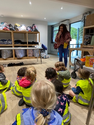 A group of children also helped deliver the food to the local food bank. The children there listened to a talk about how they would be helping local adults and children and how the food bank operates.