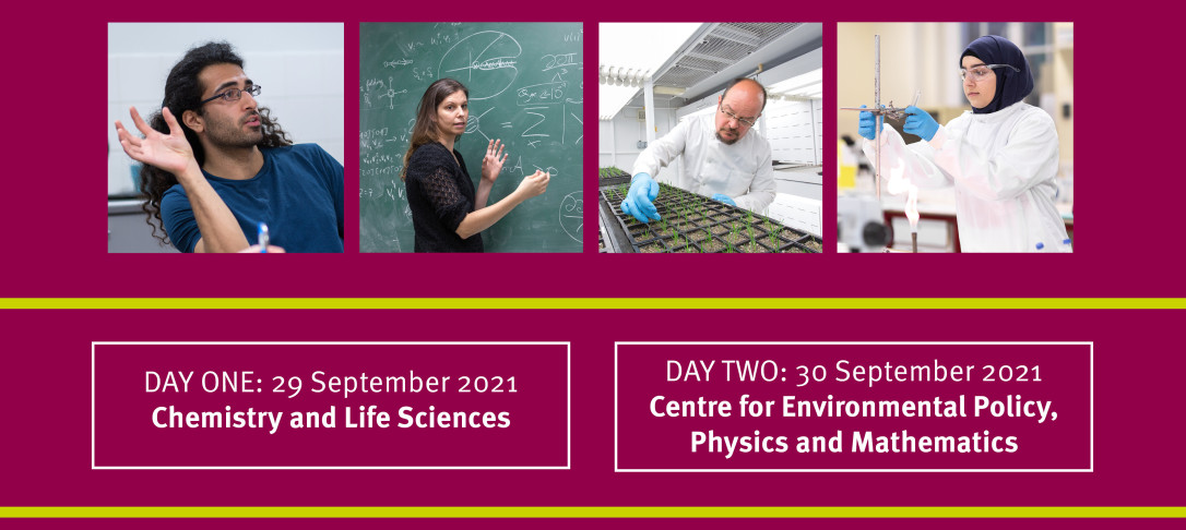 - DAY ONE (29 September 2021) will host talks from the Departments of Chemistry and Life Sciences
