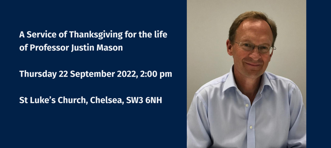 A service for the life and work of Professor Justin Mason will be held in St Luke’s Church, Chelsea at 2 pm on Thursday 22 September 2022.
