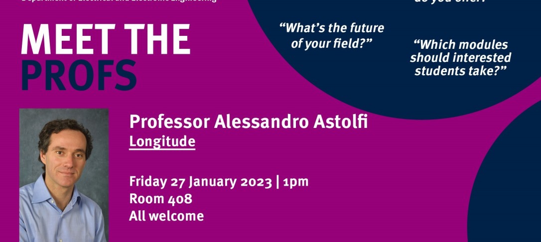 This series of seminars will help you get to know some of our staff, and ask them questions about their research, teaching, projects and the career opportunities available. Join Prof Astolfi for this presentation and Q&A session.