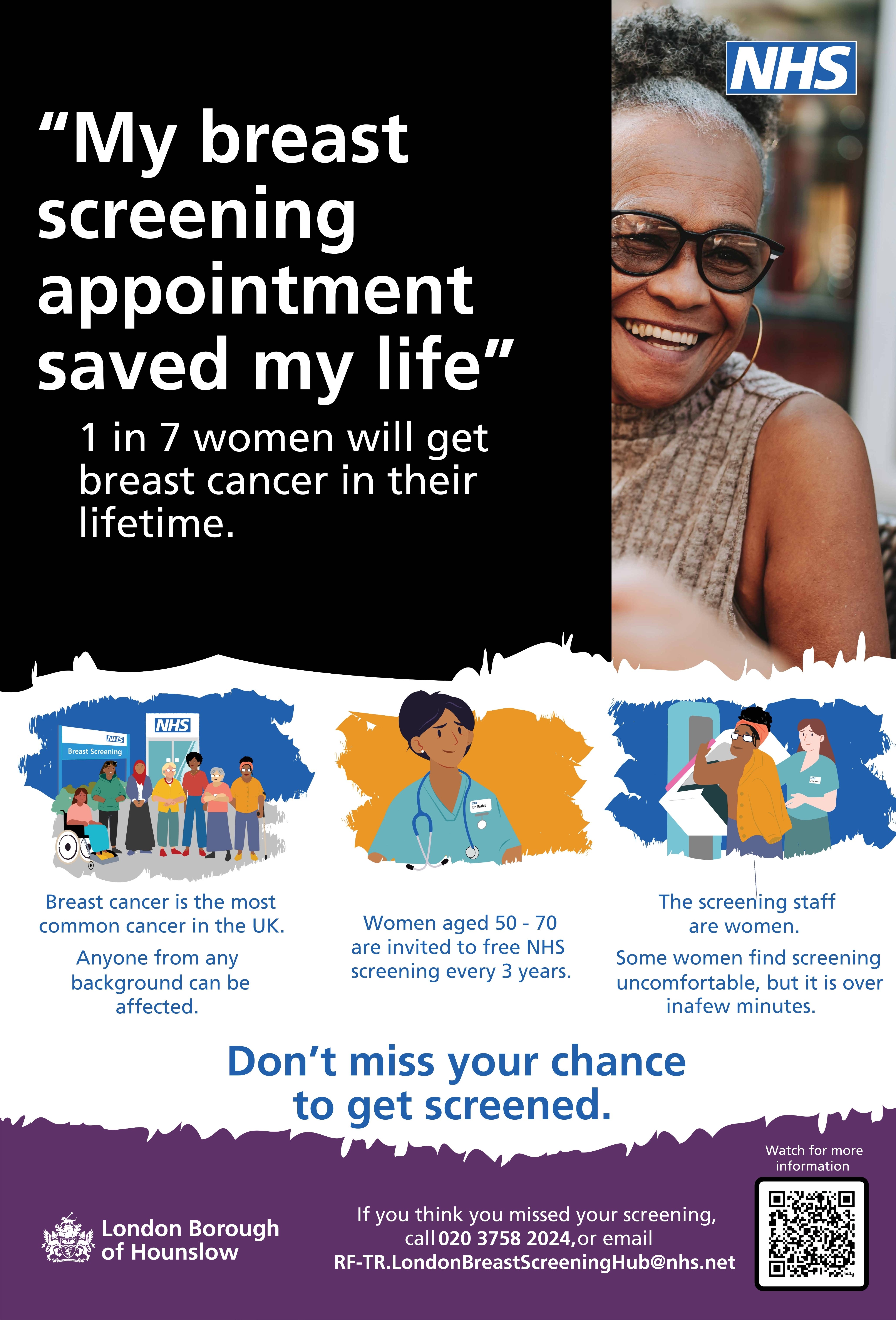 The study will measure screening uptake using NHS data and also gather insights through short surveys with women attending screening and in the community. In order to assess uptake, we will be accessing breast screening data and linking this with NHS data on ethnicity, for women who are invited to screening between January 2026-January 2027, and who live in Hounslow (intervention Borough), or Tower Hamlets, Hackney, Newham, and Islington (comparator boroughs). For information on how your data is used, please see our Patient Notification Document.
