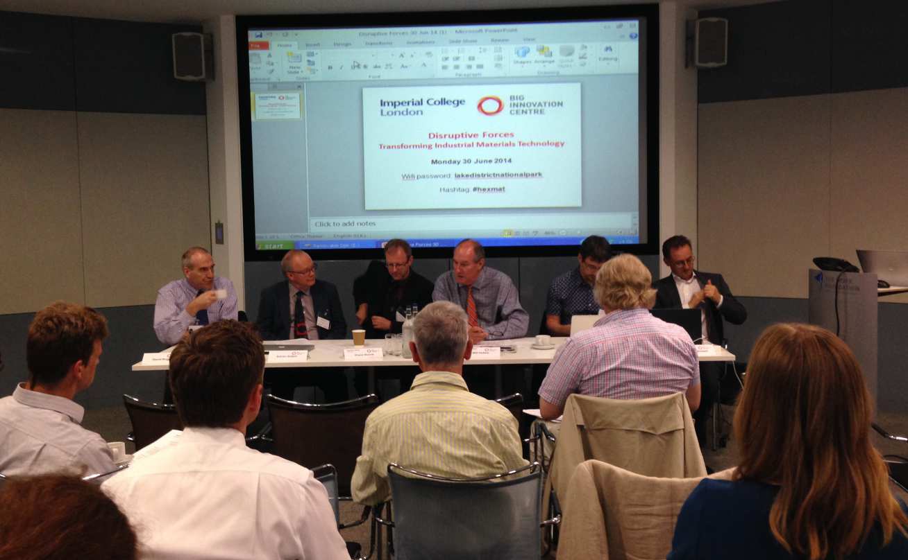Imperial College and the Big Innovation Centre (BIC) hosted the Disruptive Forces seminar on 30th June, 2014. This was a half-day meeting, bringing together leading industrialists and academics. The HexMat team presented some pioneering transformational techniques being developed in materials technologies, including characterisation, microscopy and modelling, addressing how industries can better take up research in materials for improved materials properties, behaviour and performance.