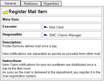 By clicking on an Activity, the Executor Role will be displayed. If you want to know more about the Mail Clerk Role, you can click on this Role, and the following will result.