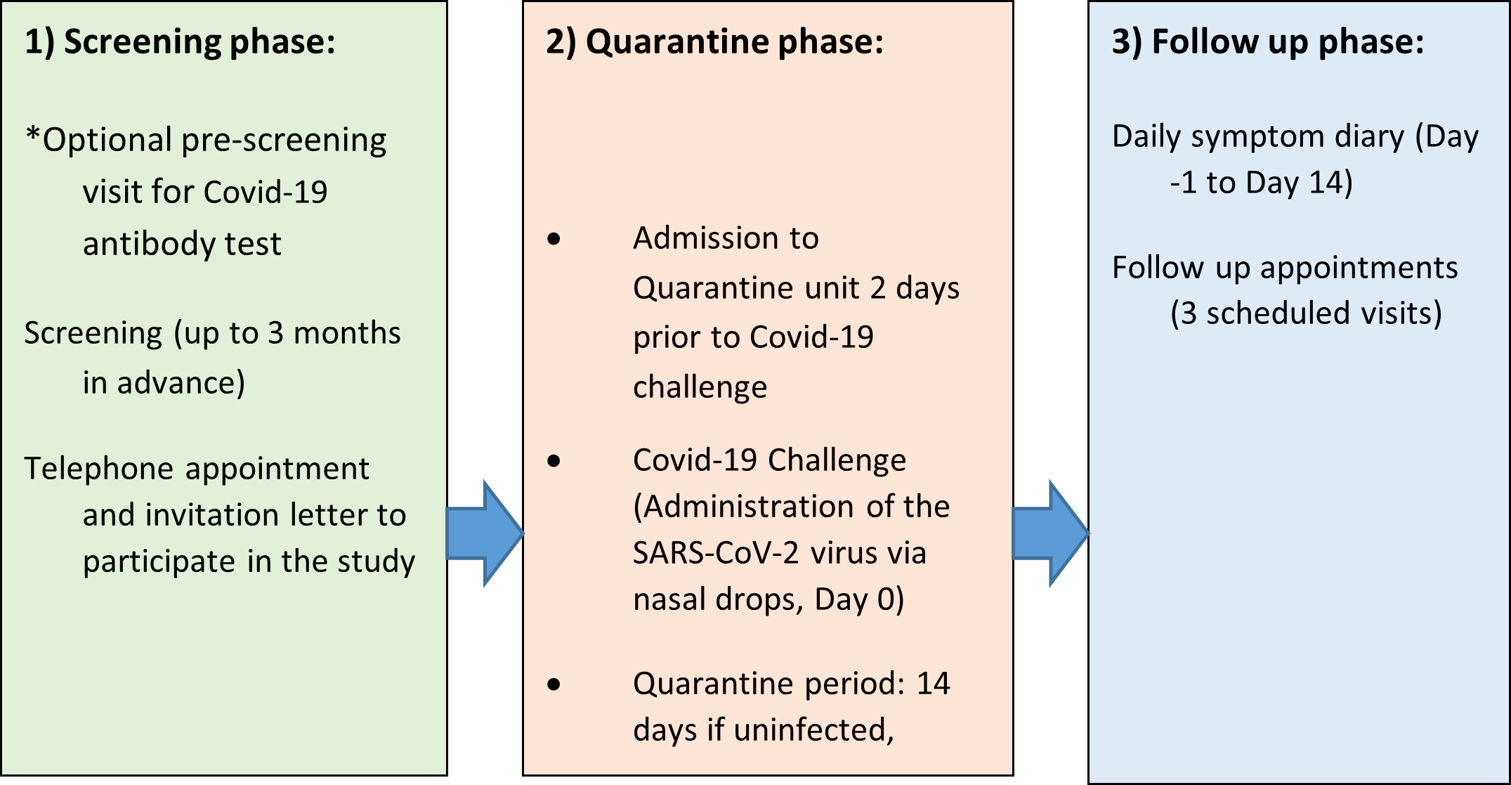 *At later phases of the study we may invite volunteers for a pre-screening visit where we will take a blood test for antibodies against Covid-19. We would then only invite volunteers for a full screening if they had lower antibodies against Covid-19.
